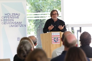 „Gemeinsam Umsetzen“ ist das Motto der diesjährigen Netzwerkveranstaltung der Hessischen Architektenkammer zur Förderung der Holzbauquote im Hessischen Raum. Mit seinem Impulsvortrag "Holzbaukompetenz in der Planung" erläutert Manfred Stieglmeier die Besonderheiten des modernen Holzbaus und weshalb die bisherigen konventionellen Bauprozesse für das vorgefertigte Bauen mit Holz nicht einfach übernommen werden können. Es braucht dafür eine gewisse Kompetenz beim Planen um ein Holzbauprojekt wirtschaftlich und effizient (holzbaugerecht) umzusetzen.