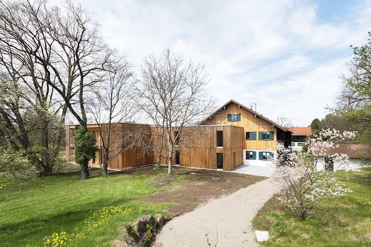 Ein bestehendes Ensemble des Landesamtes für Umwelt im ländlichen Weilheimer Voralpenraum wird um ein Laborgebäude in Holzbauweise erweitert.